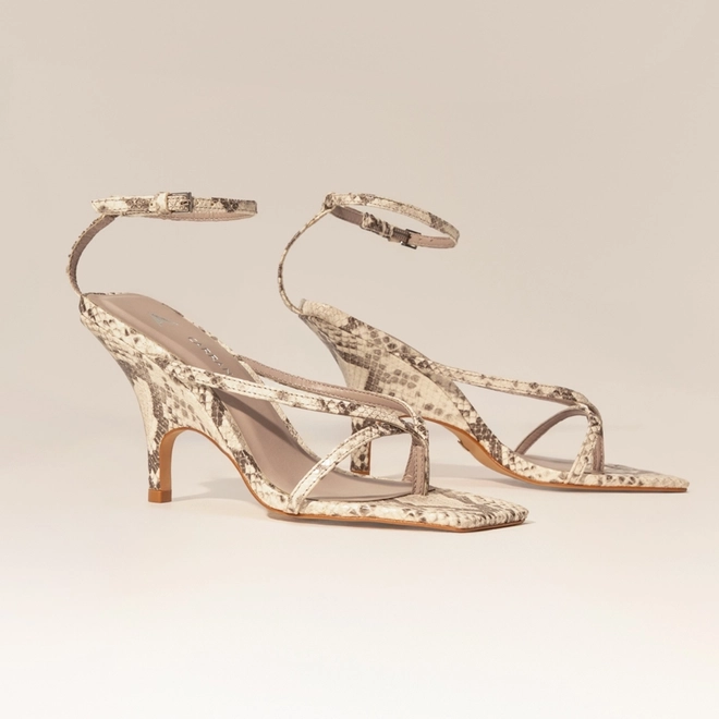 Sandália Slim Salto Fino Couro Python Animal Print Gray