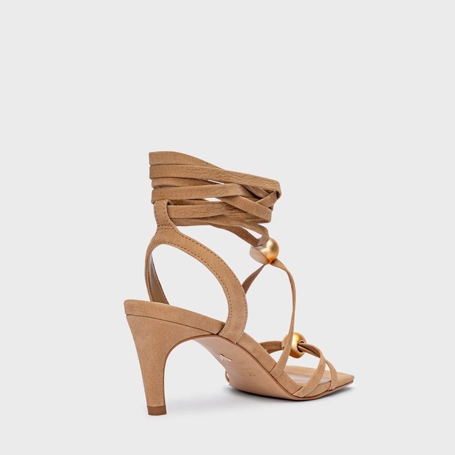 Sandália Sphere Lace Up Salto Fino Couro Nobuck Bege Toffee