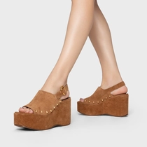 Sandália Statement Studs Maxi Anabela Couro Suede Marrom Sadde
