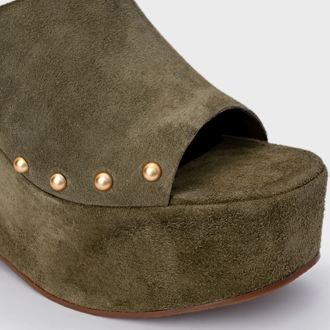 Sandália Statement Studs Maxi Anabela Couro Suede Verde Army Green