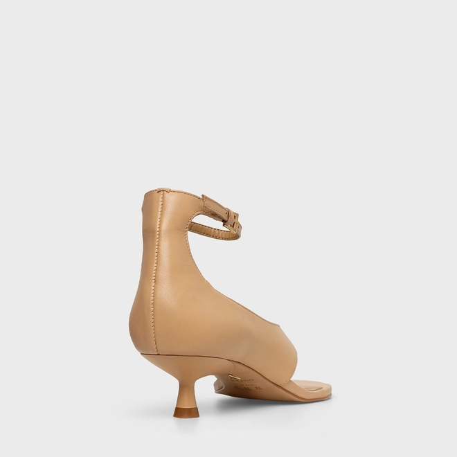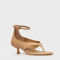 Sandália Thong Bold Salto Fino Couro Bege Porcini