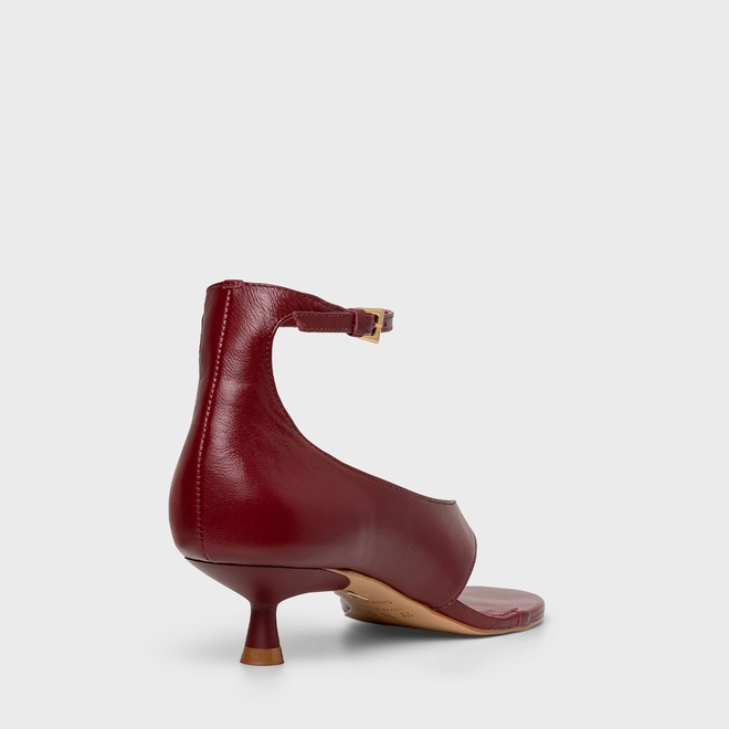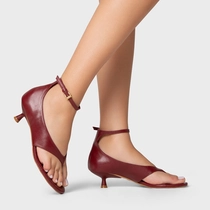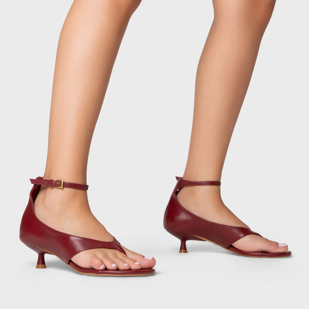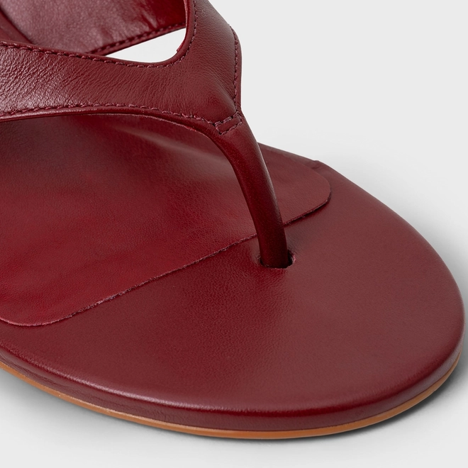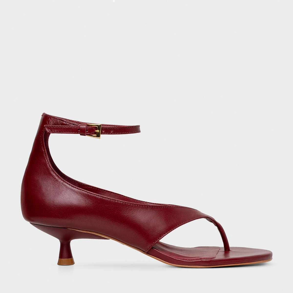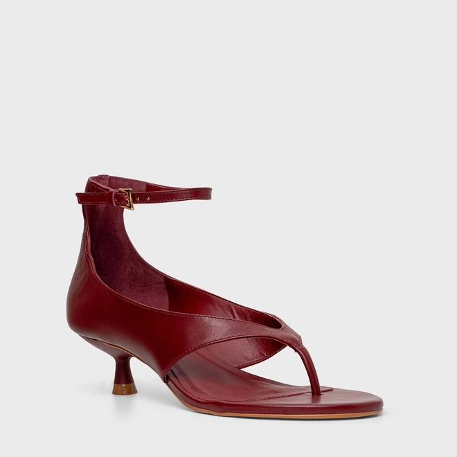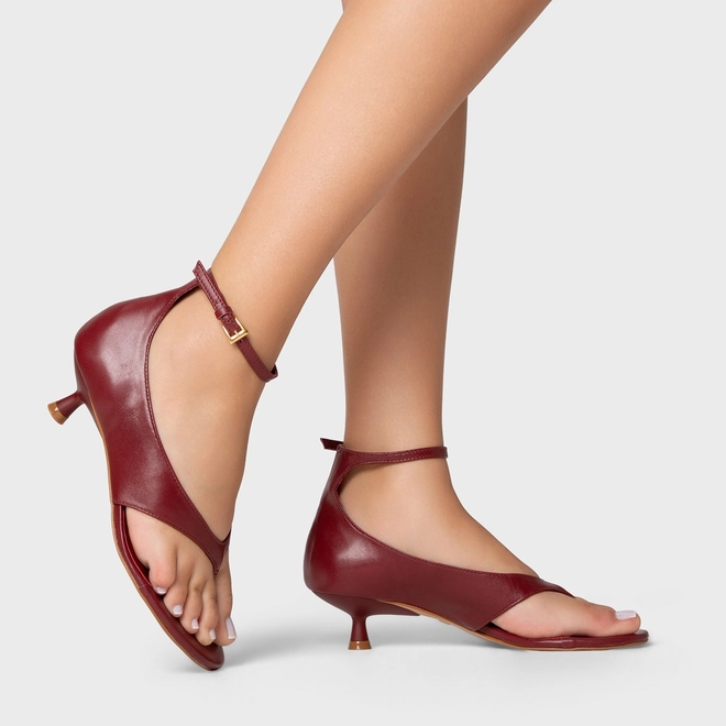 Sandália Thong Bold Salto Fino Couro Vinho Merlot