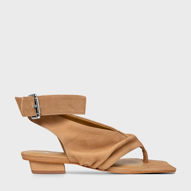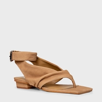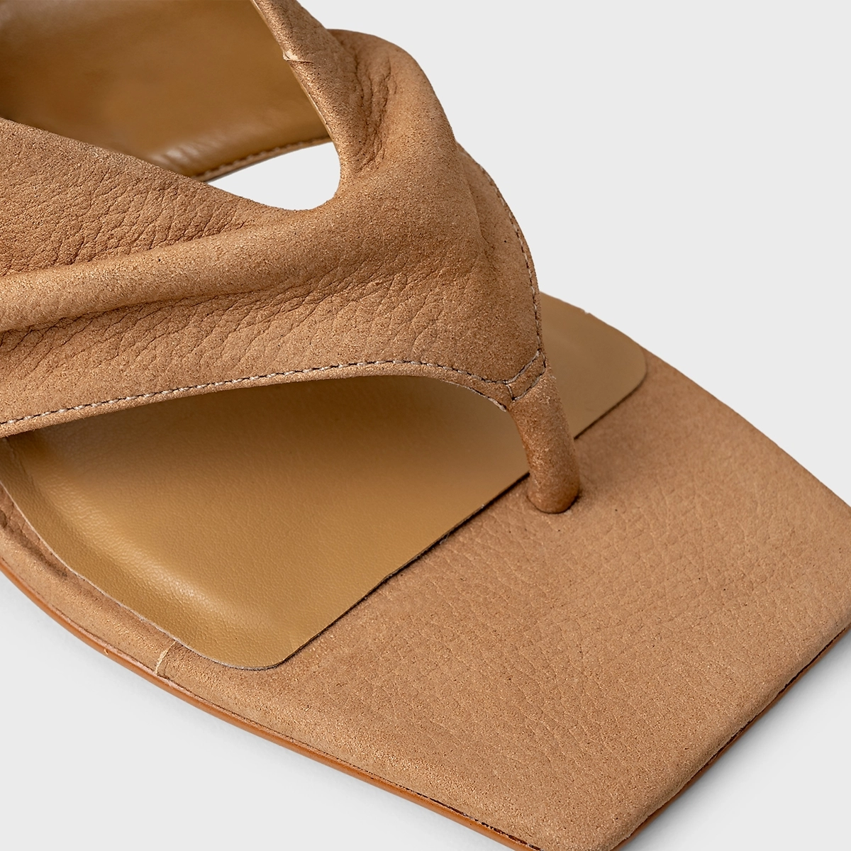 Sandália Thong Ripple Couro Nobuck Bege Toffee