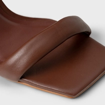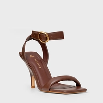 Sandália Tira Puffy Salto Fino Couro Marrom Brunette