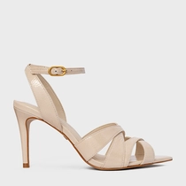 Sandália Tiras Cruzadas Salto Fino Couro Verniz Off White Cotton