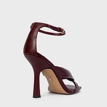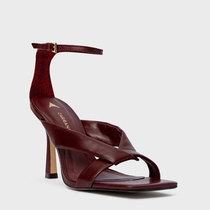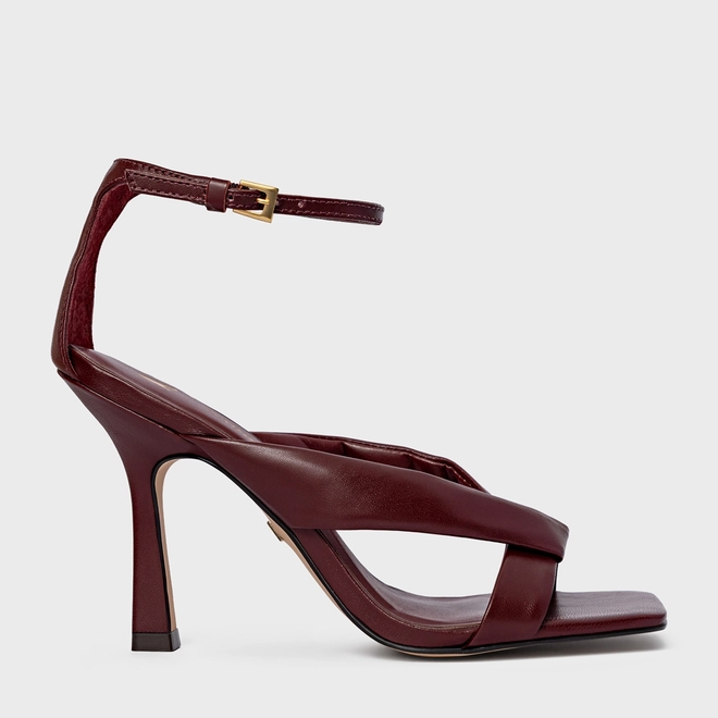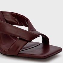 Sandália Tiras Puffy Salto Fino Couro Vinho Mahogany