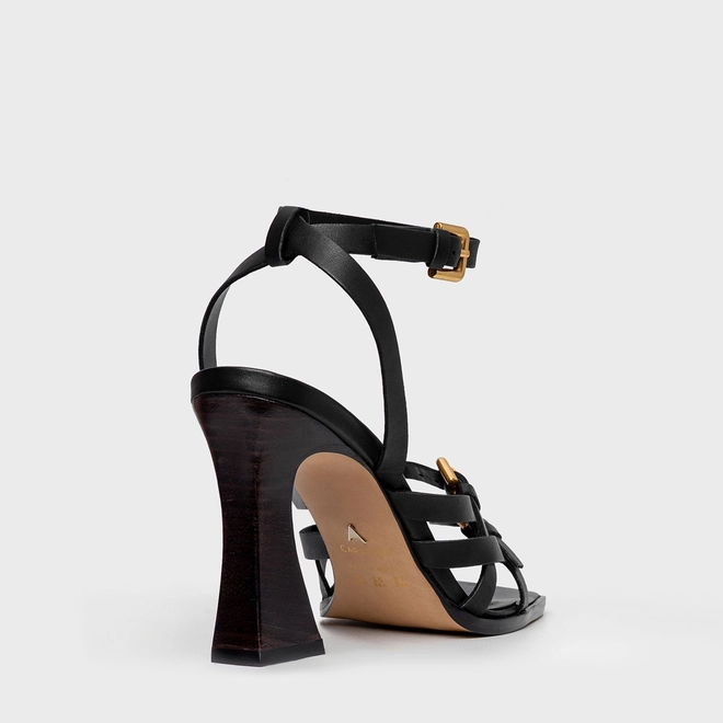 Por que apostar? Essa sandália é extremamente sensual, ela apresenta detalhes em fivelas que envolvem o pé e conferem um visual moderno a quem a usa. Como usar? Experimente com uma jaqueta de vinil, um top de renda e uma calça no estilo barrel. Uma produção de moda que expressa sensualidade com um aspecto descontraído.