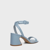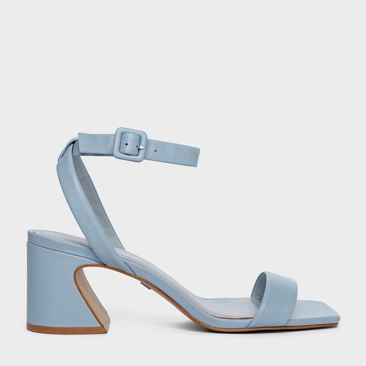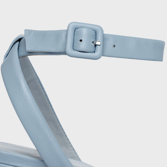 Sandália Tiras Salto Wave Couro Azul Flower Blue