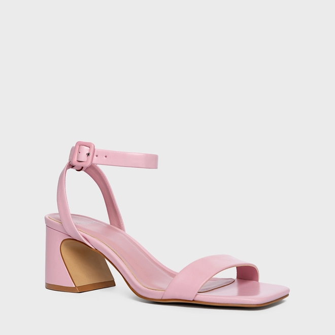 Sandália Tiras Salto Wave Couro Rosa Baby