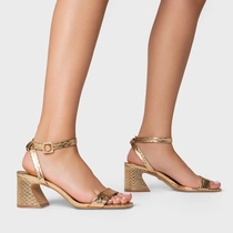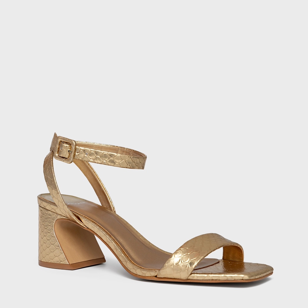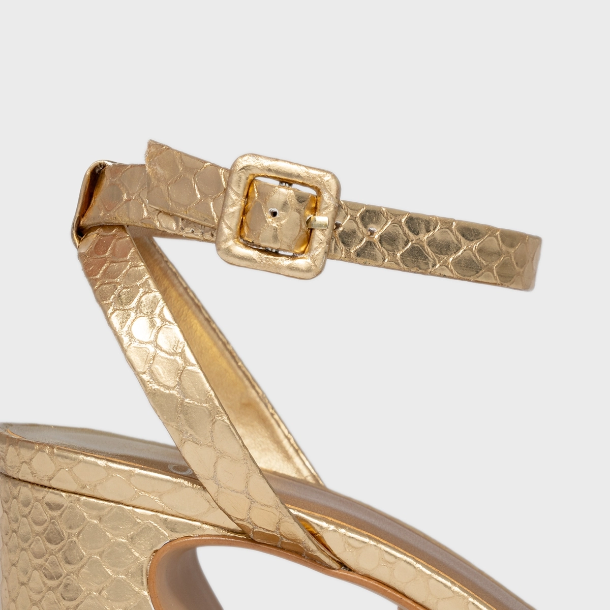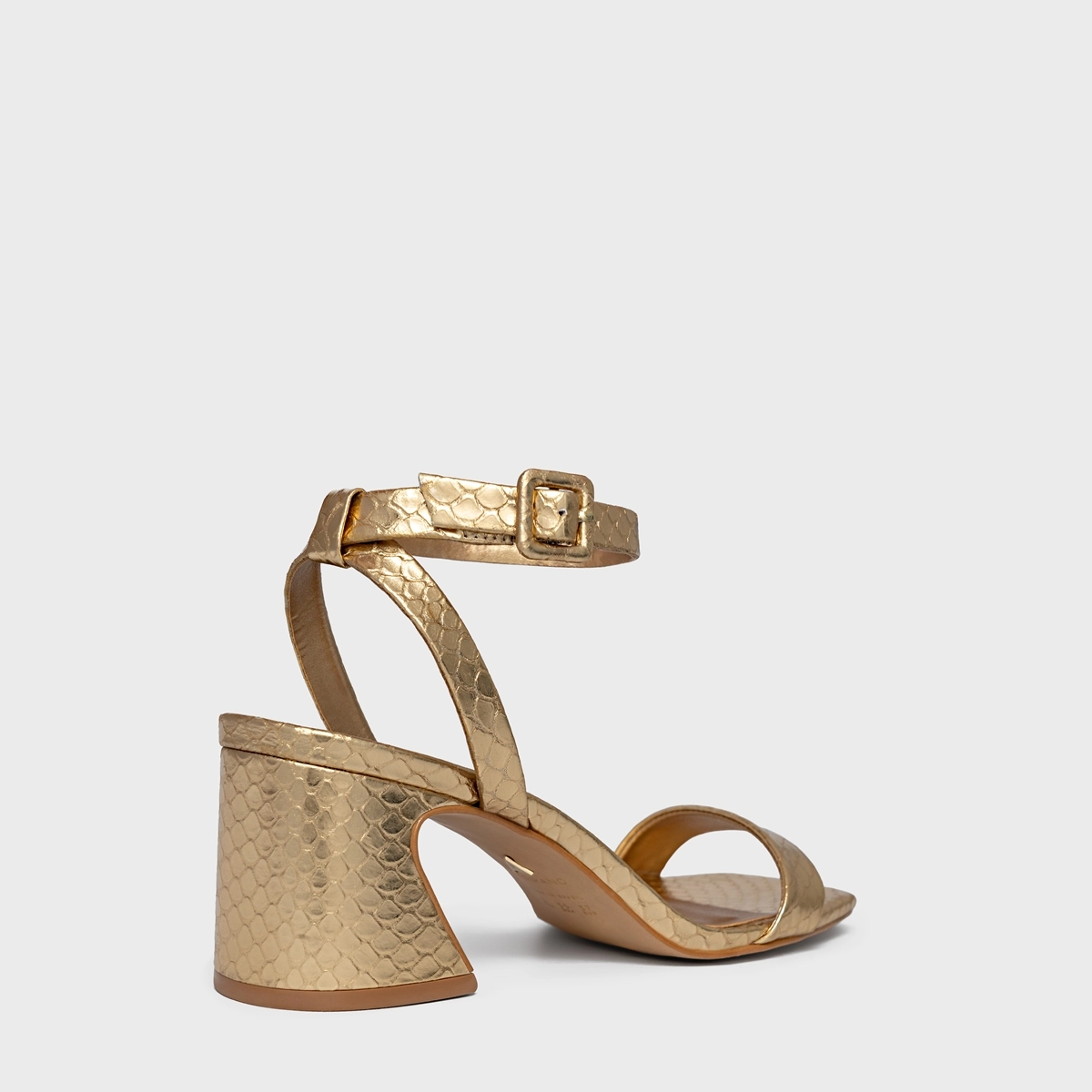 Sandália Tiras Salto Wave Couro Snake Dourado