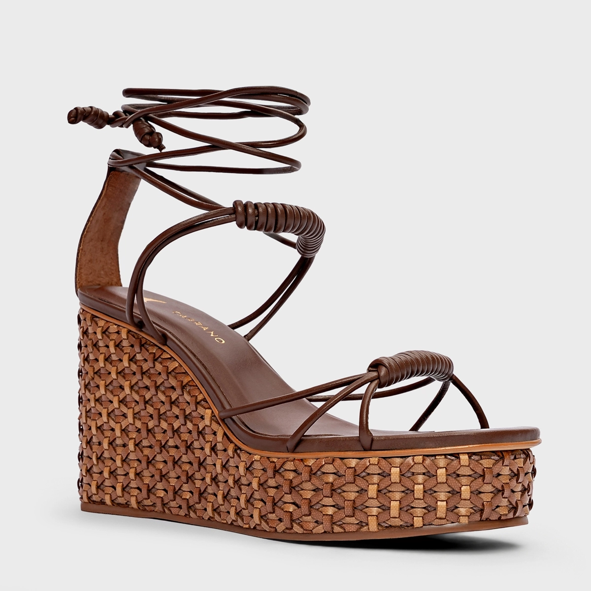 Sandália Tressê Lace Up Anabela Couro Marrom Brunette
