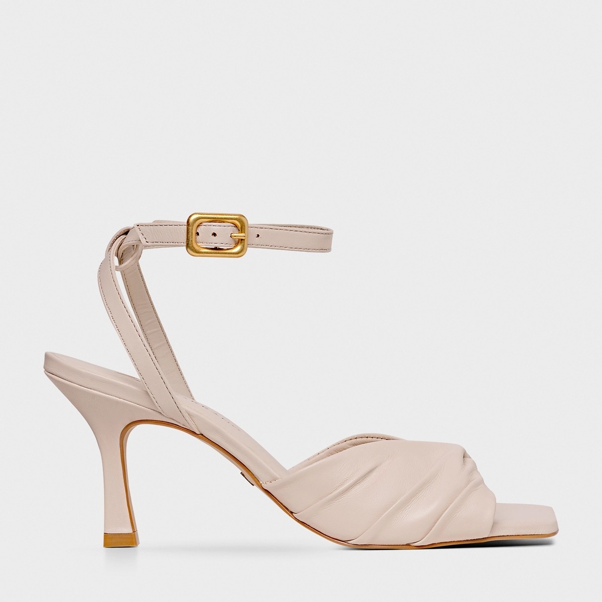 Sandália Twist Salto Fino Couro Off White Cotton