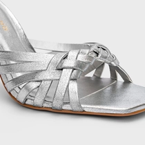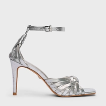 Sandália Weave Salto Fino Couro Metalizado Prata