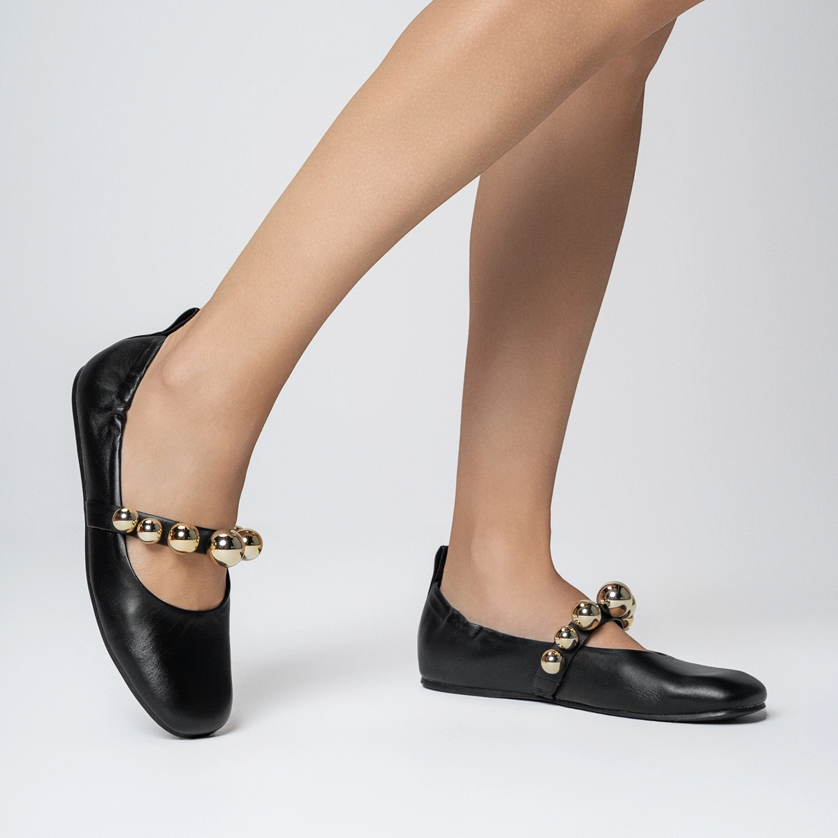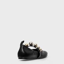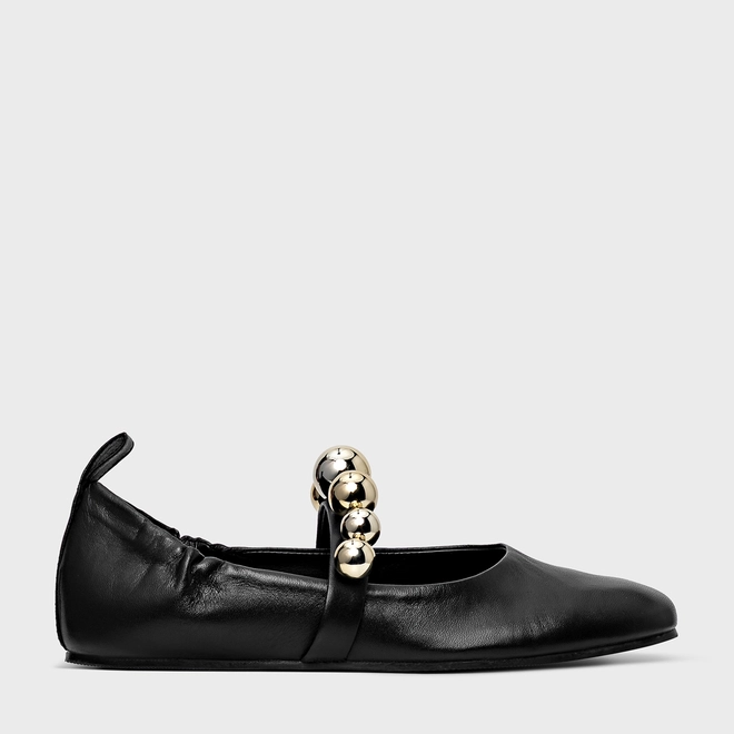 Por que apostar? Essa sapatilha ganha destaque com a sua tira com esferas douradas no peito do pé, enquanto o elástico traseiro e o puxador facilitam o calce, tornando o modelo prático e sofisticado. Como usar? Para um look casual chic, combine com jeans barrel, camiseta branca básica e blazer oversized. Outra sugestão é apostar em calça de alfaiataria e camisa de botão fluida para um visual elegante e confortável.