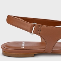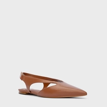 Sapatilha de couro no estilo slingback. O modelo tem salto rasteiro e bico fino. Possui recorte no cabedal, abertura na parte lateral e traseira.