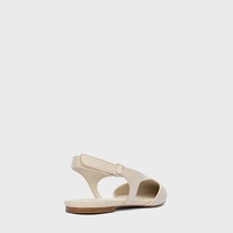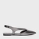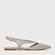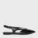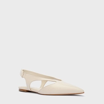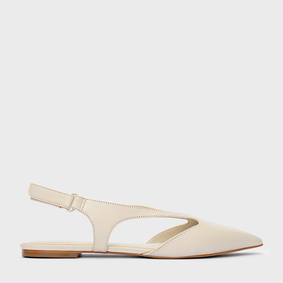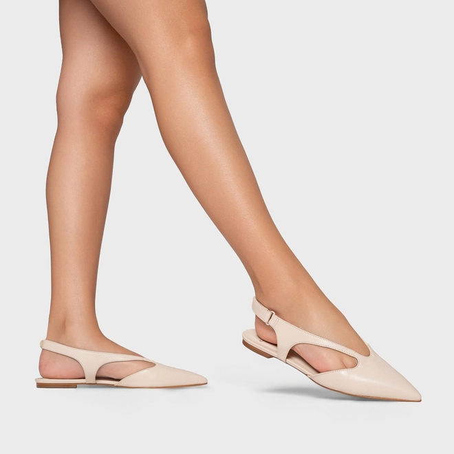 Sapatilha de couro no estilo slingback. O modelo tem salto rasteiro e bico fino. Possui recorte no cabedal, abertura na parte lateral e traseira.
