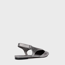 Sapatilha de couro no estilo slingback. O modelo tem salto rasteiro e bico fino. Possui recorte no cabedal, abertura na parte lateral e traseira.