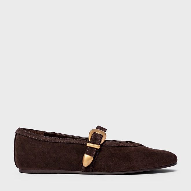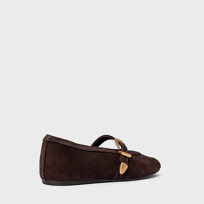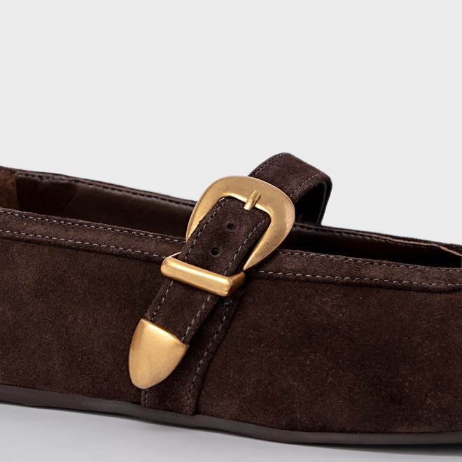 Sapatilha Detalhe Fivela Couro Suede Marrom Ganache