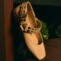 Por que apostar? Com o bico levemente quadrado, essa sapatilha mistura atitude e um toque rocker. Ideal para quem não quer passar despercebida! Como usar? Crie um contraste interessante combinando com um tricô oversized e saia acetinada com babados rendados. O resultado é um look que equilibra texturas e traz um ar moderno com toques românticos.