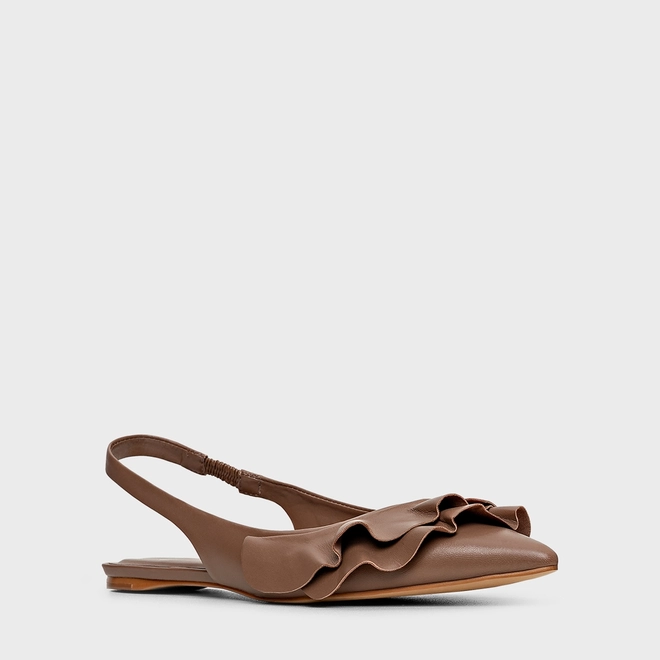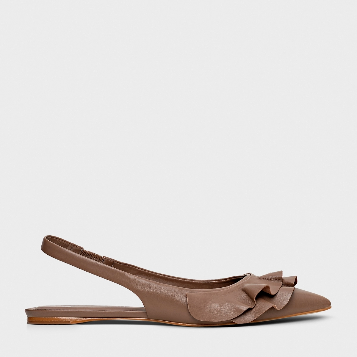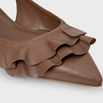 Sapatilha Slingback Babados Couro Marrom Mocha