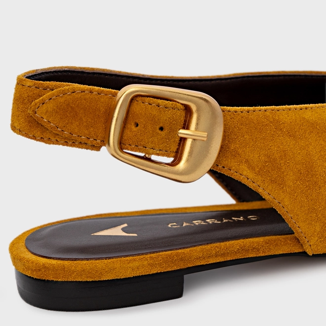 Sapatilha Slingback Buckle Couro Suede Amarelo Curcuma