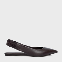 Sapatilha slingback em couro. O modelo possui salto rasteiro e bico bico, tira na parte trazeira em elastico, fechado na frente e aberta atrás.