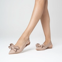 Sapatilha slingback em couro, com salto flat e bico fino. O modelo conta com tira traseira com elástico, na lateral, que se adapta no pé, e laço no cabedal que adiciona um toque romântico.