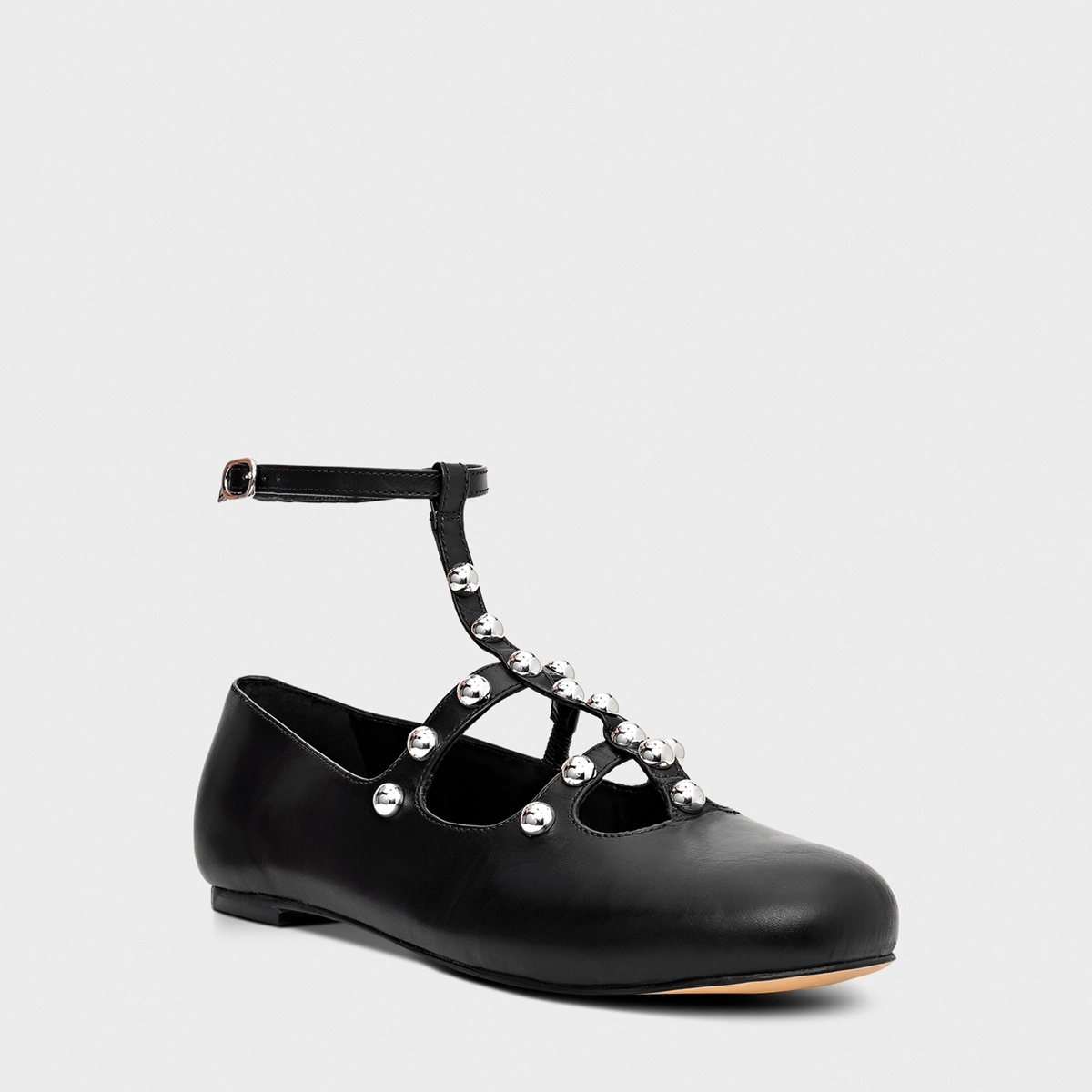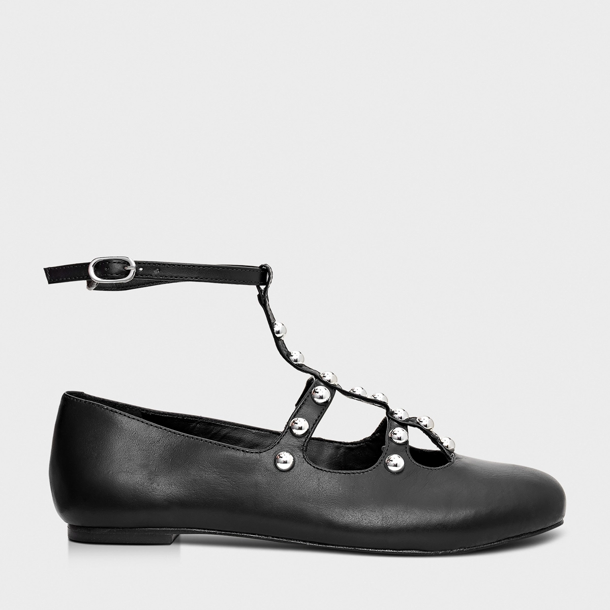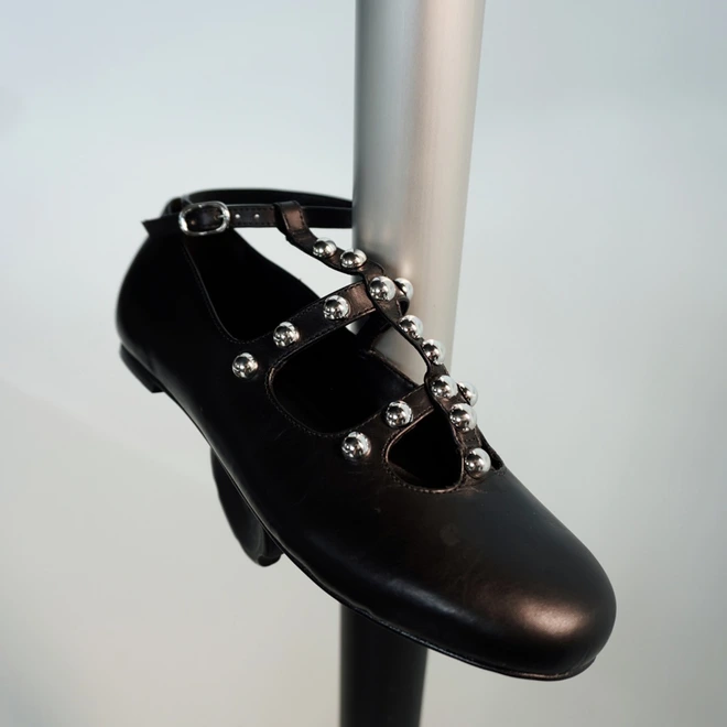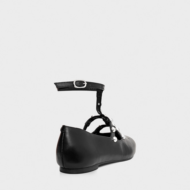 Sapatilha Tiras Tiny Balls Couro Preto