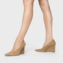Scarpin Anabela Couro Croco Suede Bege Almond