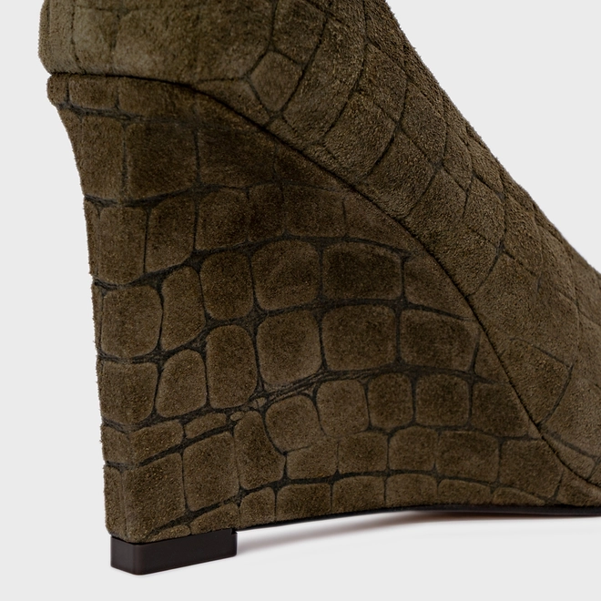 Scarpin Anabela Couro Croco Suede Verde Army Green