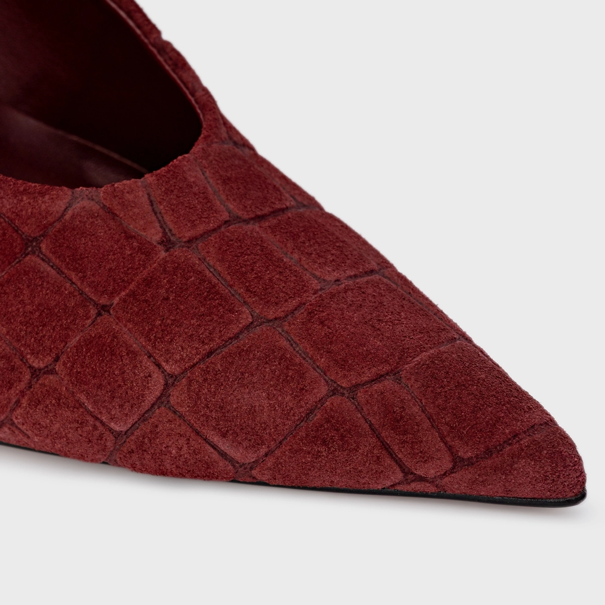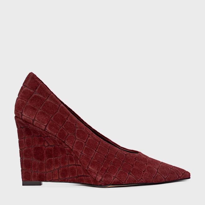Scarpin Anabela Couro Croco Suede Vinho Mahogany