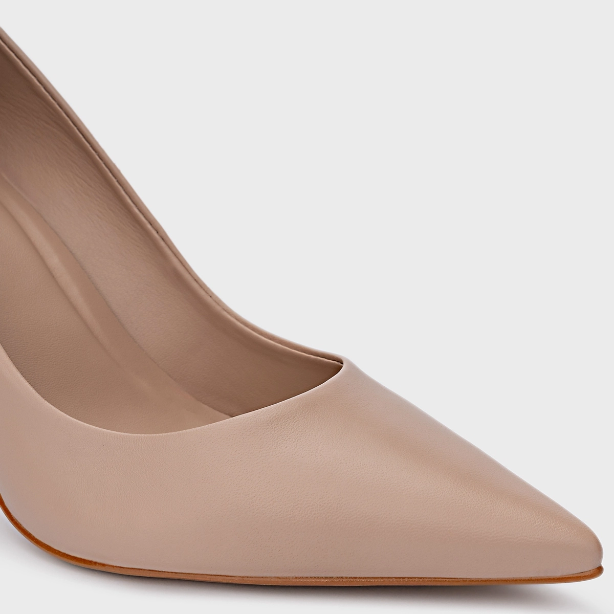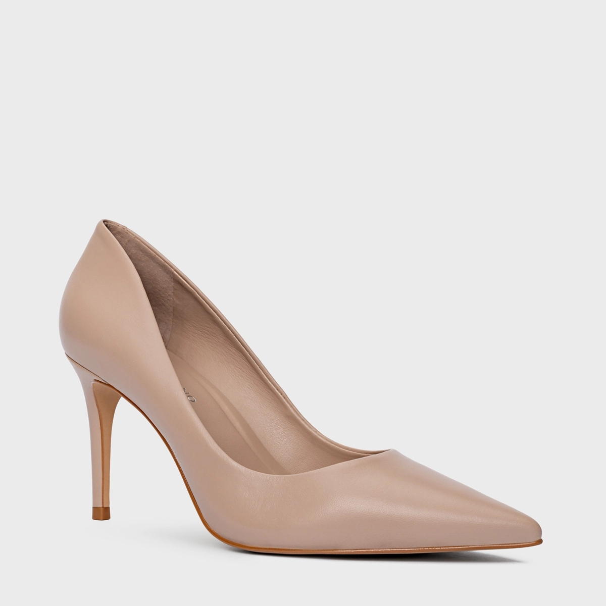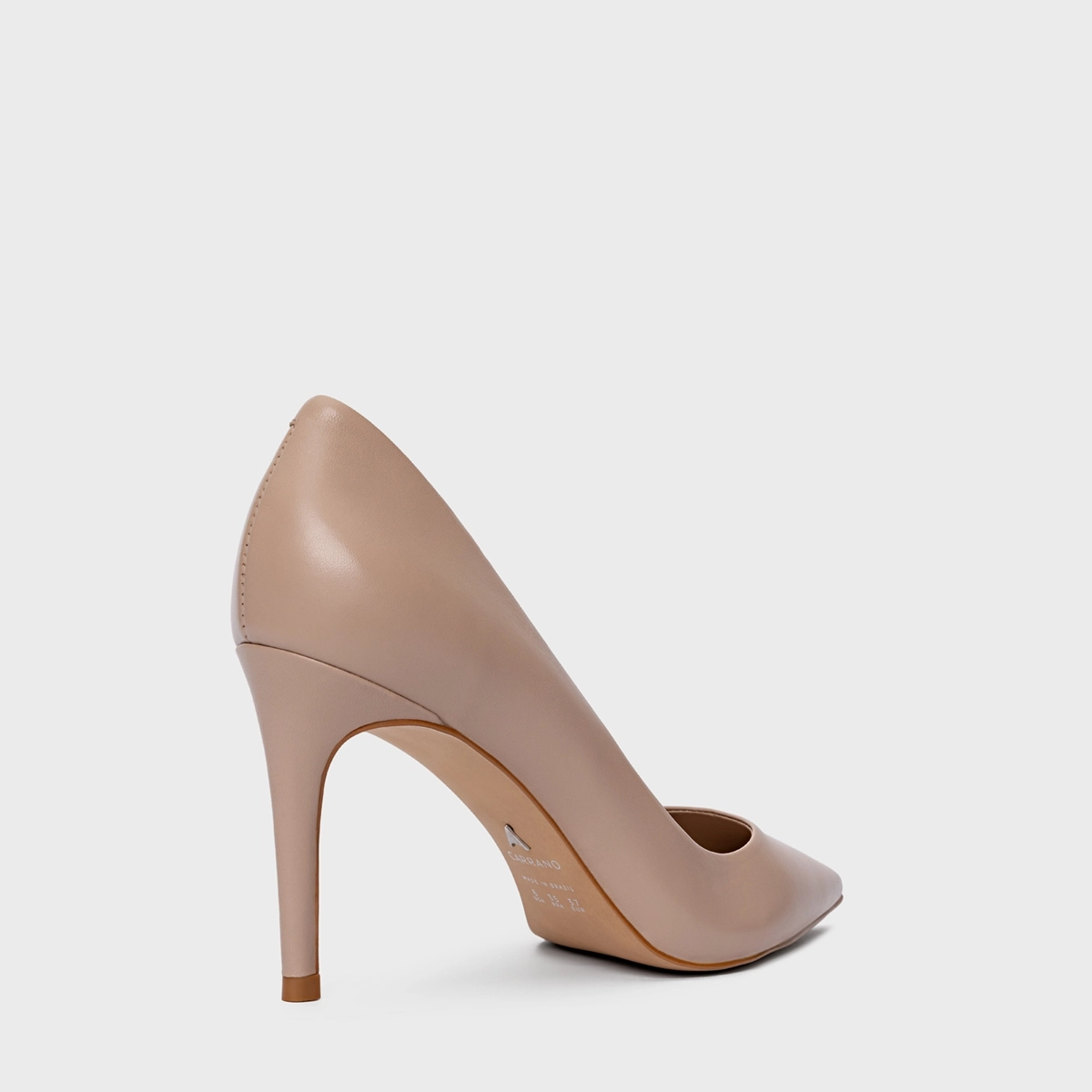 Scarpin Beatriz Salto Fino Couro Bege Bella
