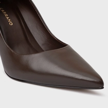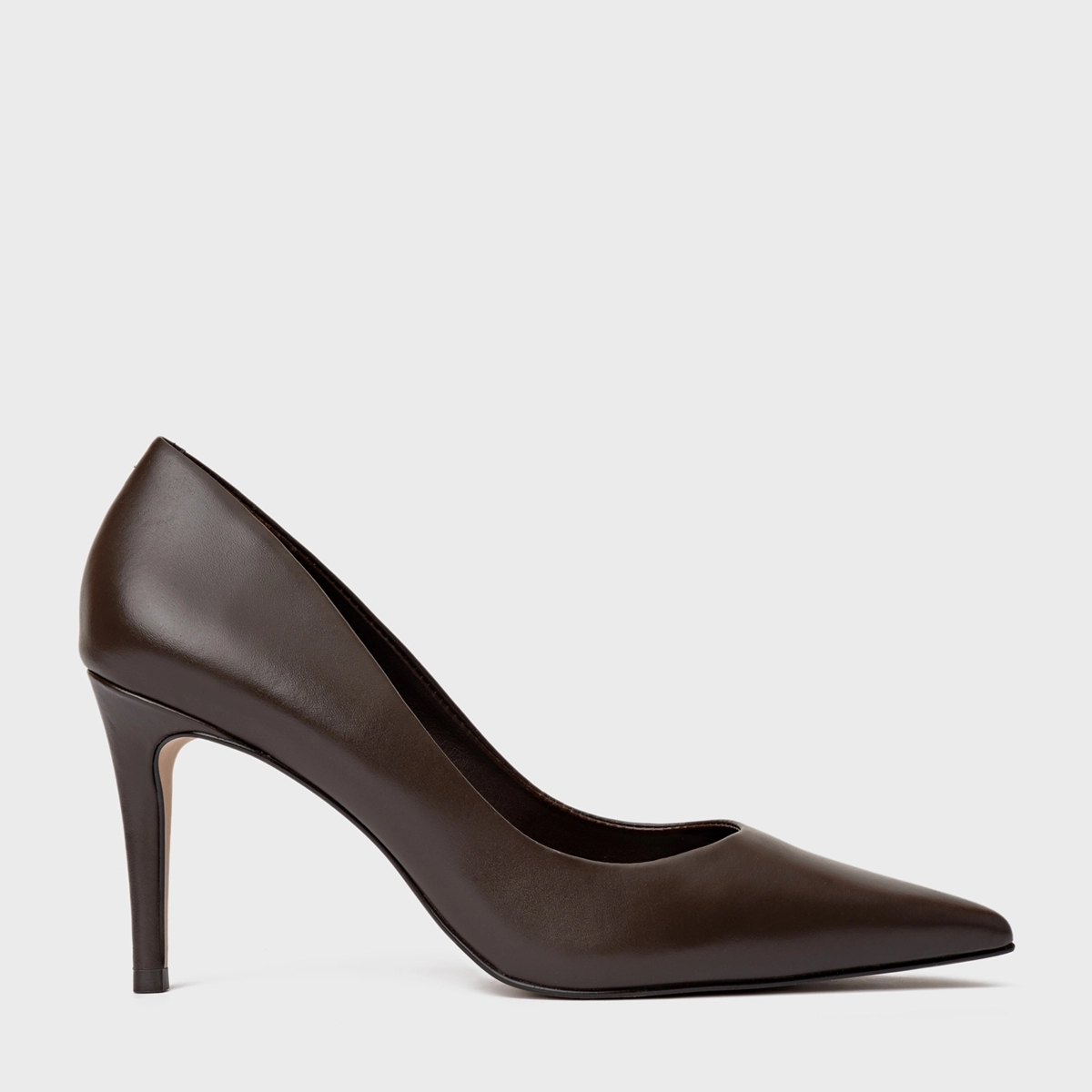 Scarpin Beatriz Salto Fino Couro Marrom Dark Brown