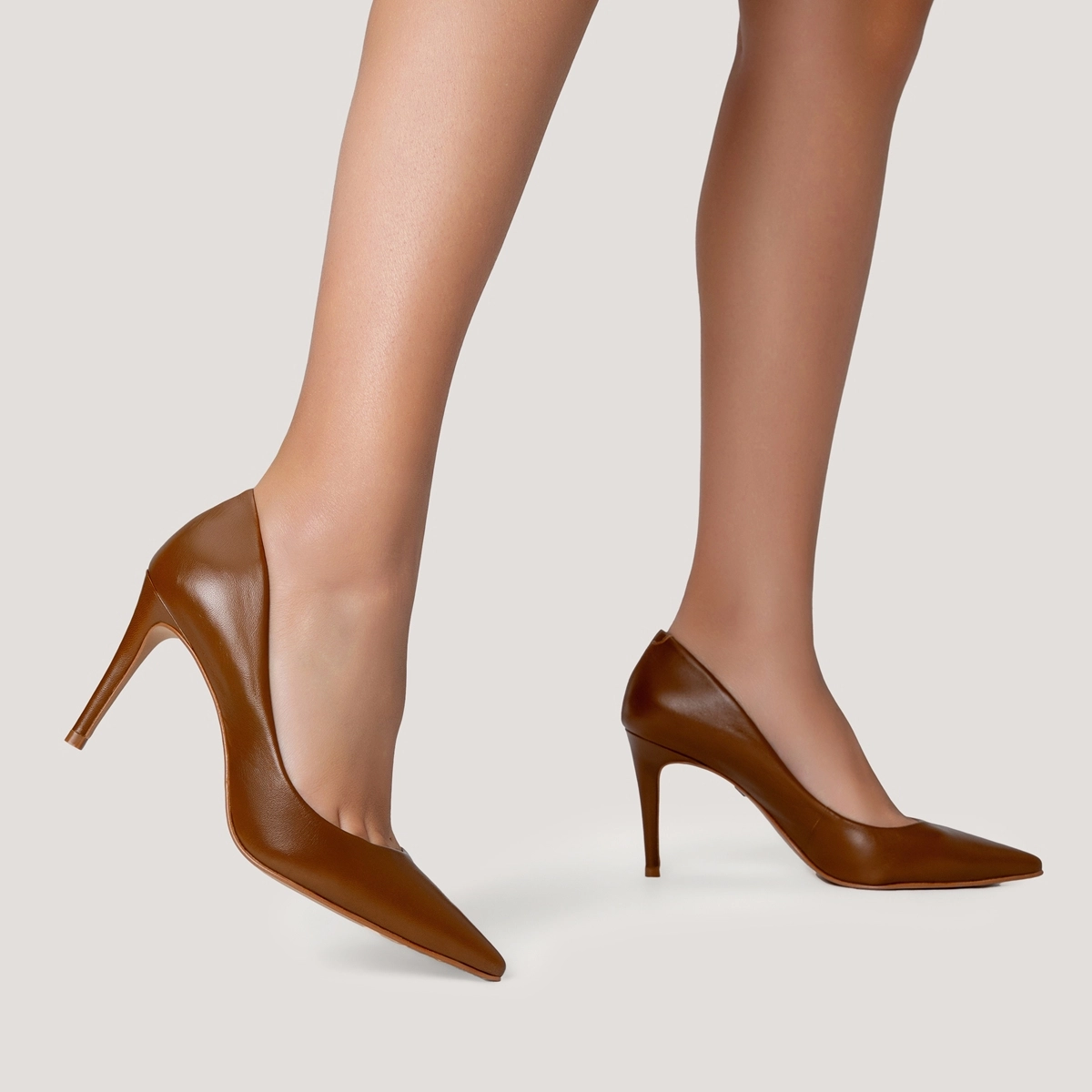Scarpin Beatriz Salto Fino Couro Marrom Saddle