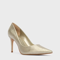 Scarpin Beatriz Salto Fino Couro Metallic Champagne