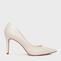 Scarpin Beatriz Salto Fino Couro Off White New Ivory