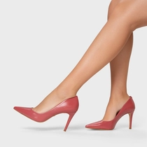 Scarpin Beatriz Salto Fino Couro Rosa Berry