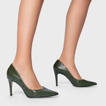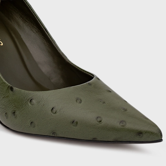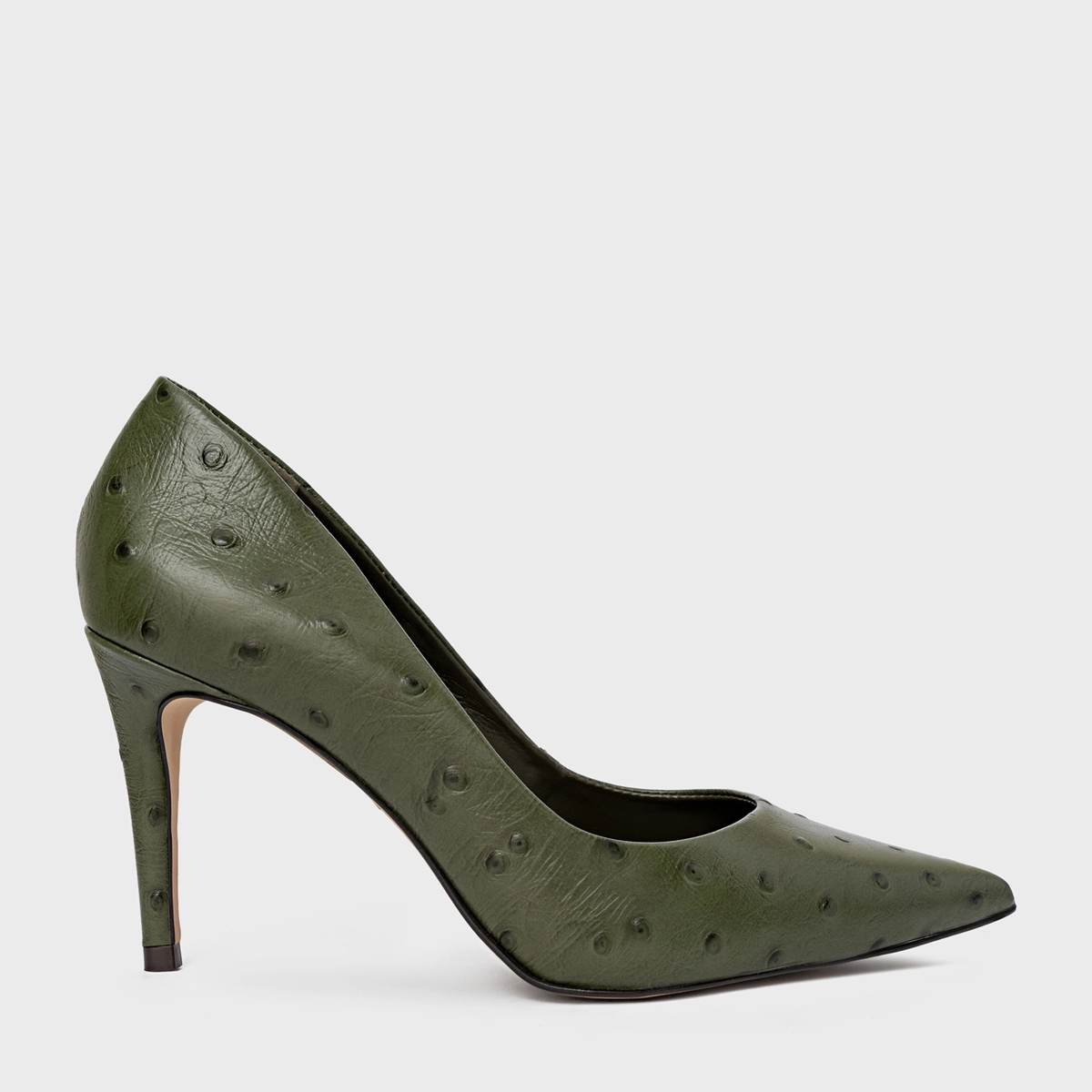 Scarpin Beatriz Salto Fino Couro Verde Army Green