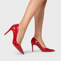 Scarpin Beatriz Salto Fino Couro Verniz Vermelho Rosso