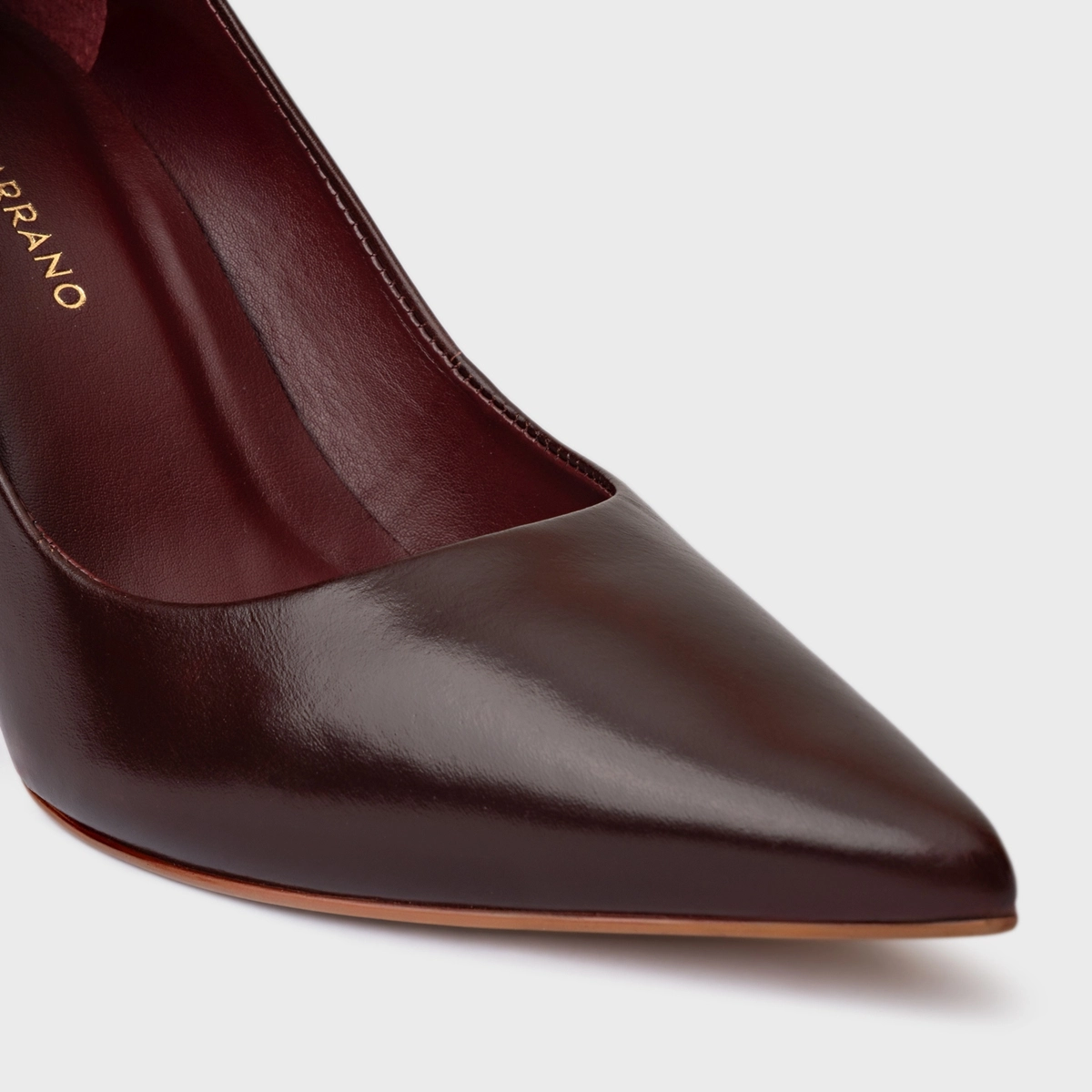 Scarpin Beatriz Salto Fino Couro Vinho Dark Mahogany