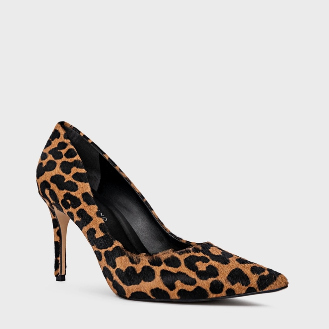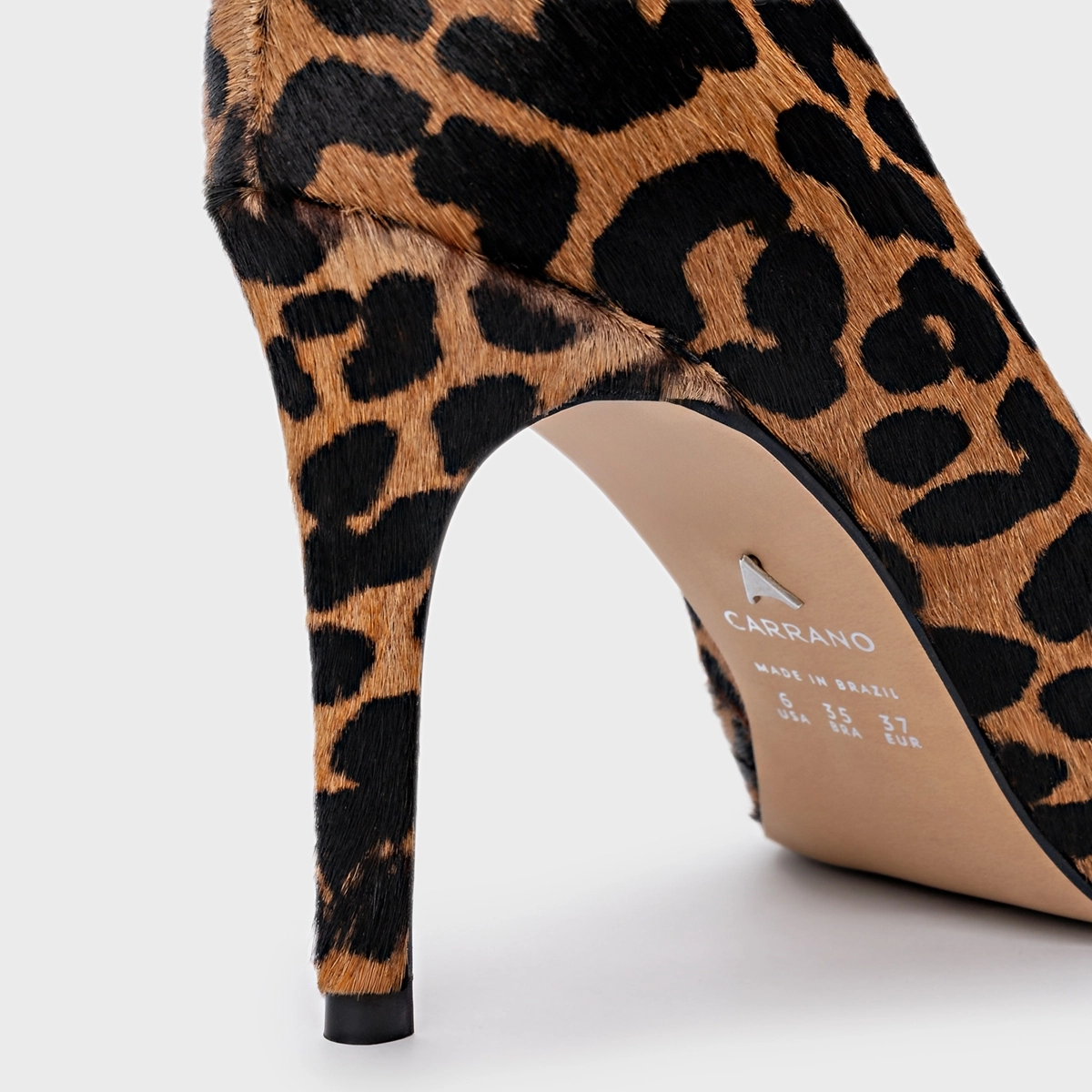 Scarpin Beatriz Salto Fino Pelo Animal Print Camel