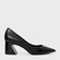Scarpin em couro. O modelo possui salto geométrico e bico fino. Acompanha a anatomia do pé, prezando pelo conforto e estabilidade na hora do calce.