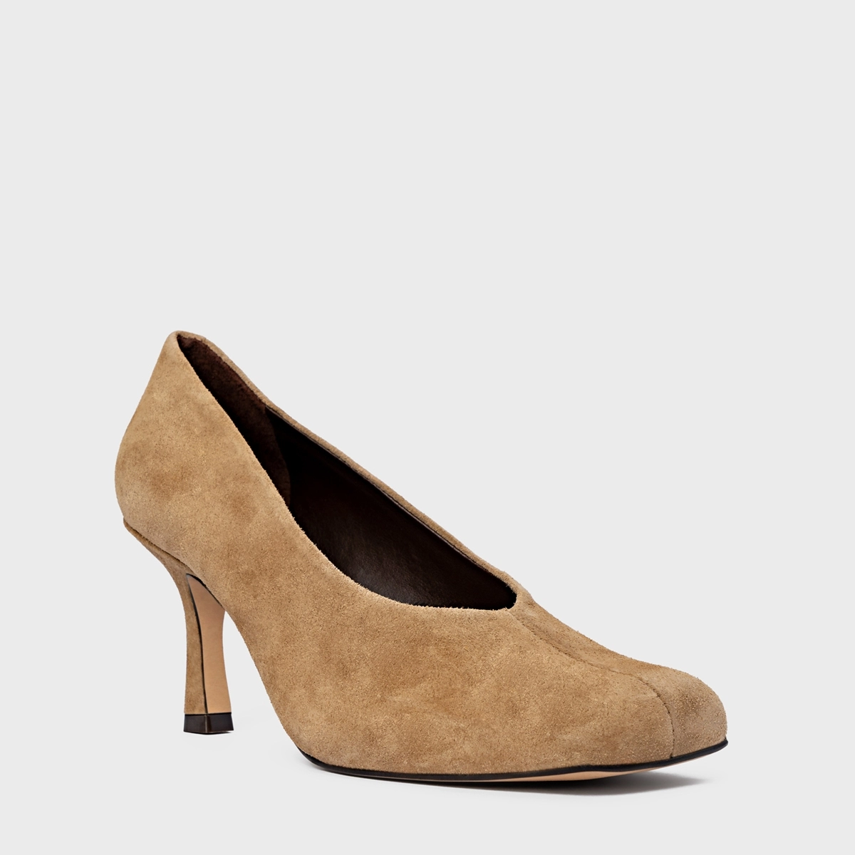 Scarpin Blown Salto Fino Couro Suede Bege Almond