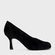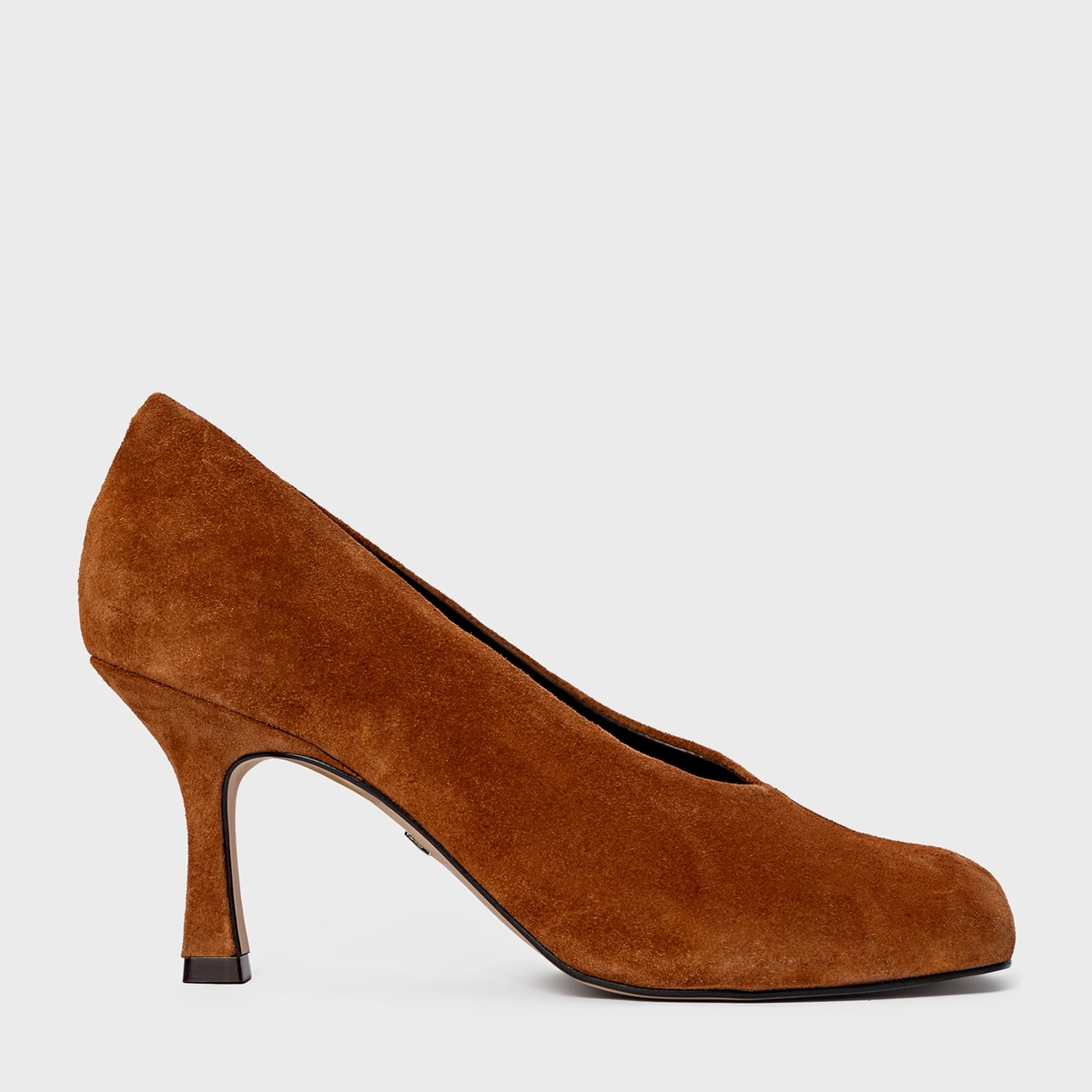 Scarpin em couro suede, com bico alongado quadrado e salto fino. Possui cabedal fechado e design clean.