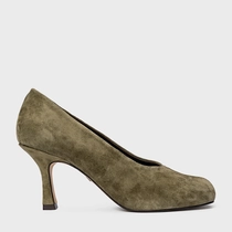 Scarpin Blown Salto Fino Couro Suede Verde Army Green