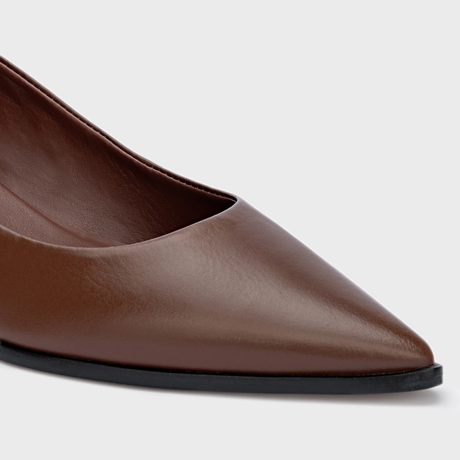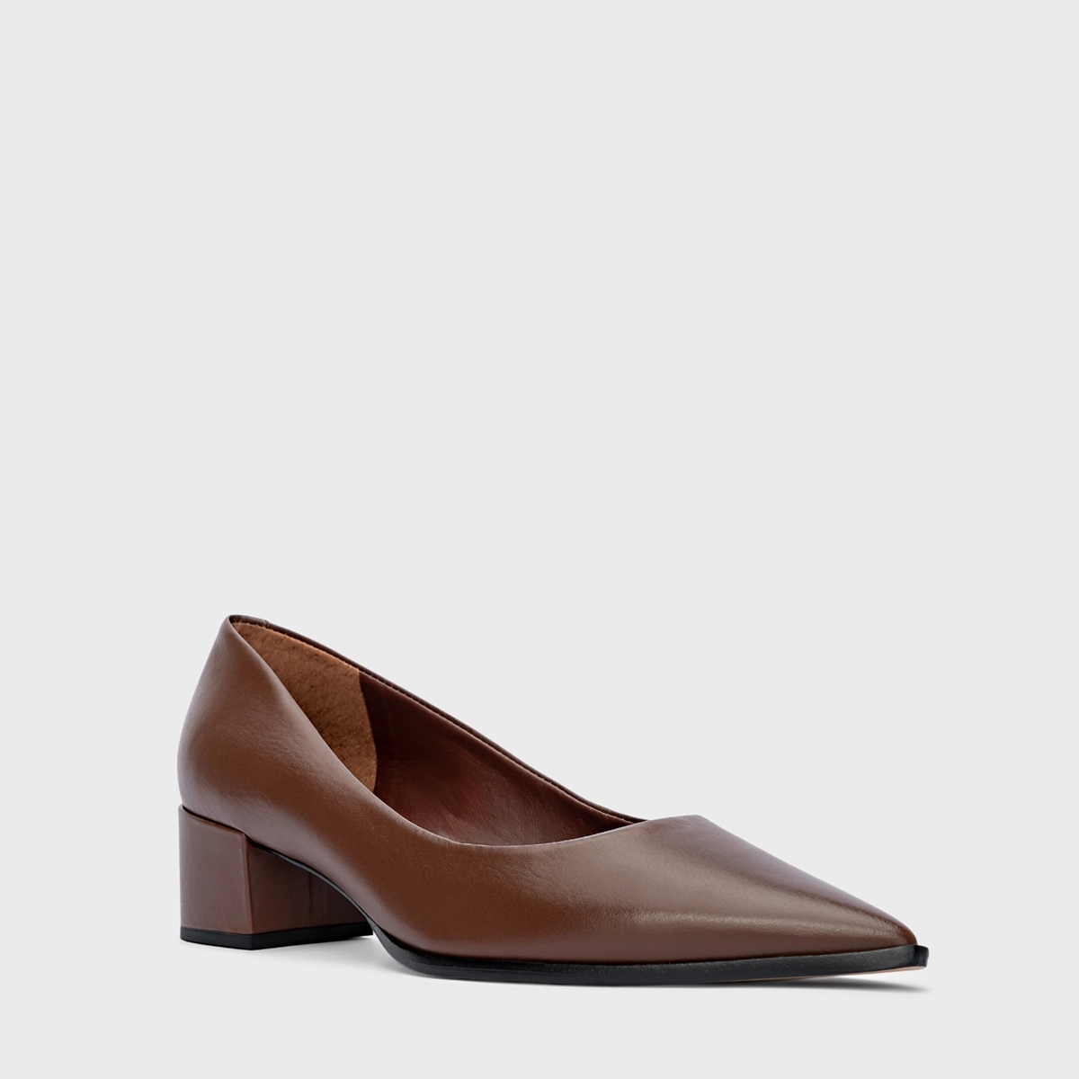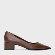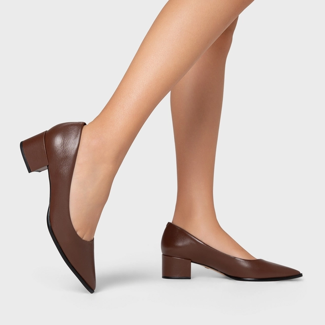 Scarpin Charlotte Salto Bloco Couro Marrom Mahogany