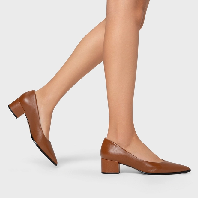 Scarpin em couro. O modelo possui salto bloco e bico fino. Acompanha a anatomia do pé, prezando pelo conforto e estabilidade na hora do calce.