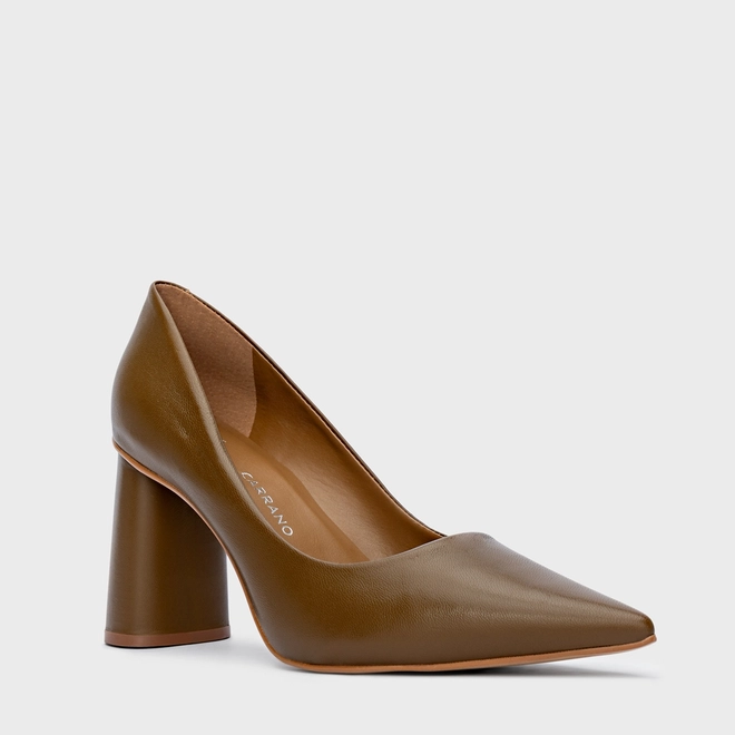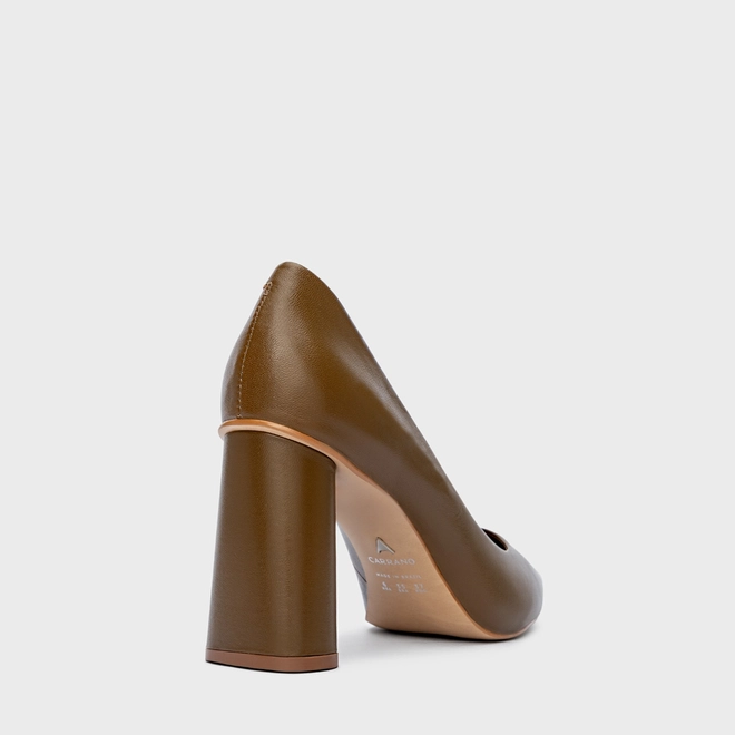 Scarpin Emma Salto Oval Couro Marrom Alce