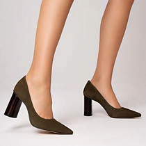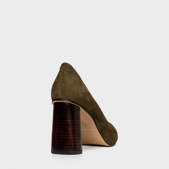 Scarpin Emma Salto Oval Couro Nobuck Verde Herb