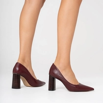 Scarpin Emma Salto Oval Couro Vinho Mahogany